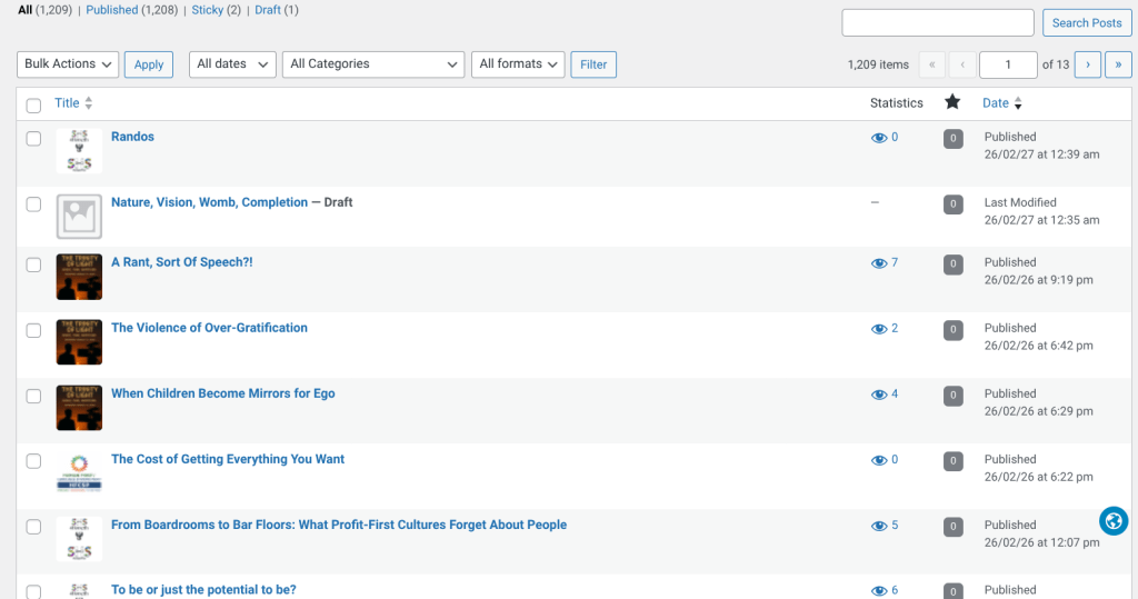 I have to say I read it wrong, and as i wrote “post 1209” I went to check it again and it was 1208, so I added what I intended to add, but forgot, the randos one. I was going to use it as proof of systematic issues and perspectives to life, from posts I came across just before, so I did and got it to 1209. Me and consciousness working together..